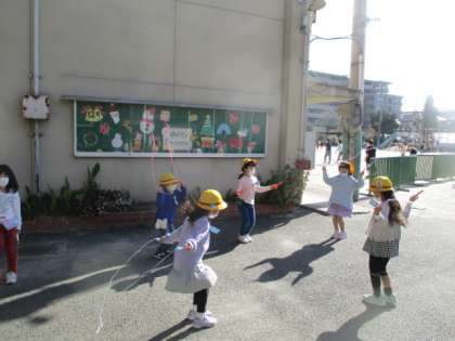 体育で縄跳びが始まりました。今日の休み時間は,お日様がぽかぽかして気持ちよかったです。とても楽しそうに,縄跳びをしていました。