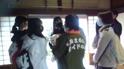 ガイドの方の説明を聞き、現代の家のつくりとは全く違うつくりに