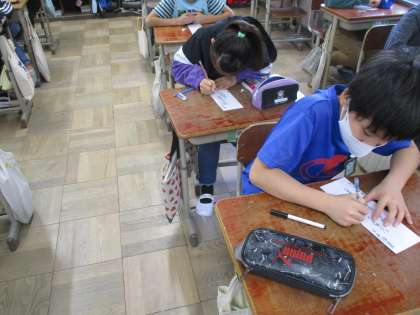 そして,自分自身に向けて,さらにはみんなに向けて人権標語を書きました。