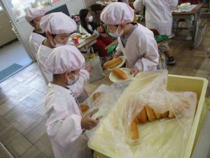 給食当番の準備のスピードがとても速くなってきました。
