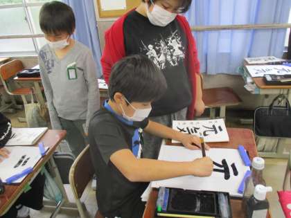 練習する時には,お互いに書いている所を見て,アドバイスをしたり,