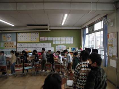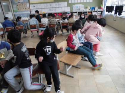 中間休みにお誕生日会をしました。今日のリクエストは,いすとりゲームでした。外は雪で寒い寒い日でしたが,みんなで遊んで心はぽかぽかでした。