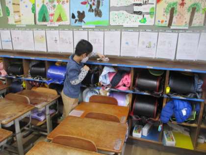 始業式の日に大掃除をしました。冬休みの間に汚れたところをピカピカにしようと,みんな頑張っていました。毎日使うみんなの教室。きれいになったね。3学期スタートです!