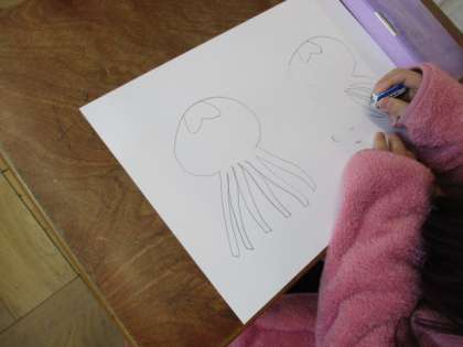 紙版画で使う海の生き物のスタンプを作りました。