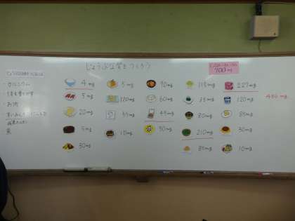 それぞれの食材の中に,カルシウムがどれくらい入っているのかを調べ,交流しました。