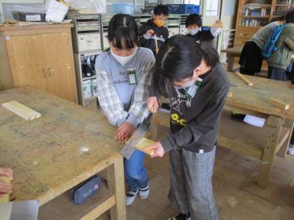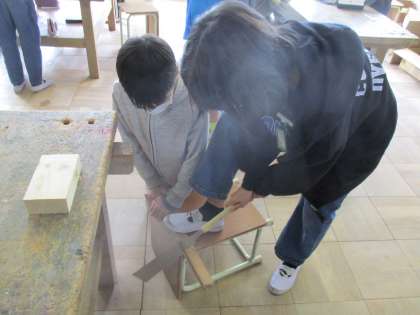 図画工作でのこぎりや金づちを使っての作品作りがあります。
