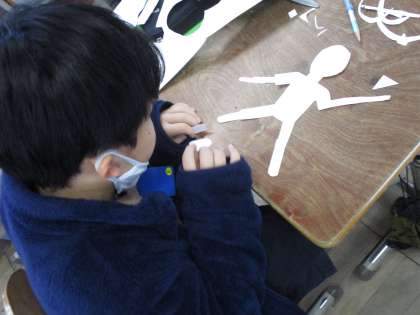 体育参観のときに踊った曲をイメージして紙版画をしています。次の時間はいよいよインクをつけて刷ります。どんな素敵な作品に仕上がるのか,今から楽しみです。