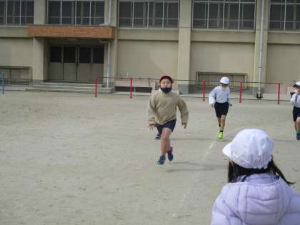 「自分のペースで5分間走る」ことを目標に,どの子どもも自分と向き合いながら,頑張りました。