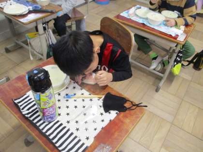 給食のメニューは,ちらし寿司と菜の花のすまし汁,そして三色ゼリーでした。