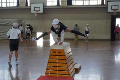 体育科の学習では,とび箱運動をしています。