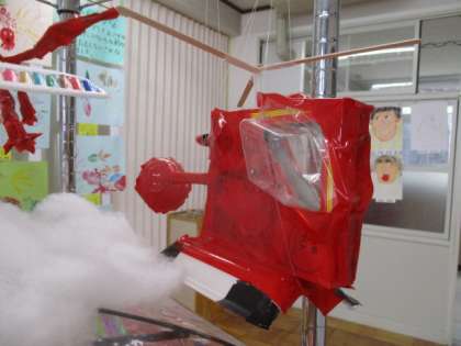コクピットやプロペラの羽根など,素材の色や質感,形を生かして作品を作りました。