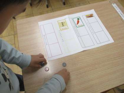 算数の学習でお買い物ゲームをしました。今年度は現金払いだけではなく,高学年は電子決済という名の筆算を使って残金を計算する方法も行いました。高学年の子どもたちはもくもくと筆算で計算をしてお買い物をしていました。