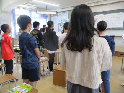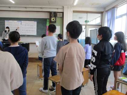 今日の音楽の学習では,「立つ合図」,「座る合図」を覚えました。