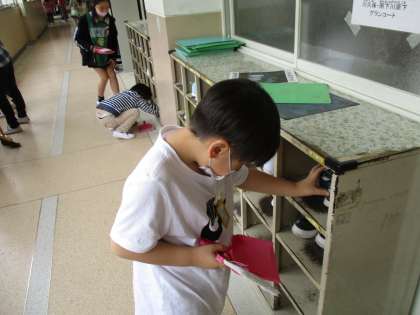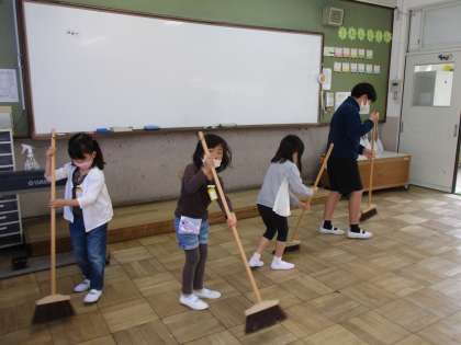 6年生のお兄さん,お姉さんが一緒に掃除をしてくれています。優しく教えている姿は,さすが6年生!!1年生は一緒に掃除ができてとても嬉しそうです。