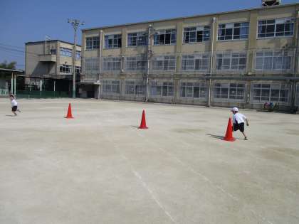 体育の学習で体を動かしてみました。広い運動場を走るのは,気持ちがよさそうです。遊具も少しずつ使い方に慣れていくといいですね。