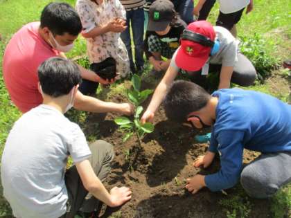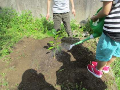 今日は草を抜いて土壌を作り,ミカンの木の苗を植えました。