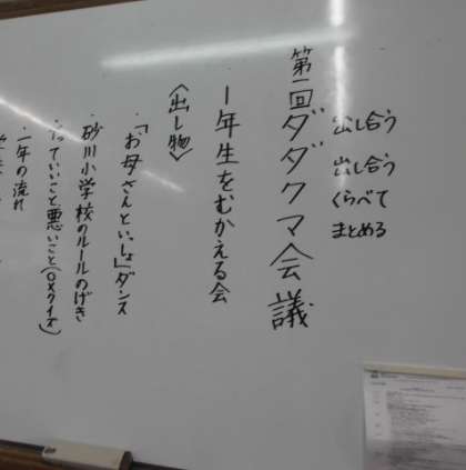 1年生を迎える会に向けて,どんなことをしていきたいか,どんなことをしたら1年生が喜んでくれるかを話し合っています。自分たちで考え,自分たちで実行していく大切な児童会の活動です。話し合っている姿に高学年としてがんばろうという意欲を感じました。