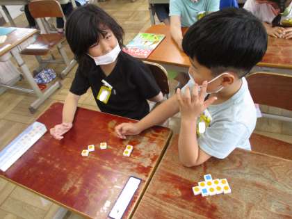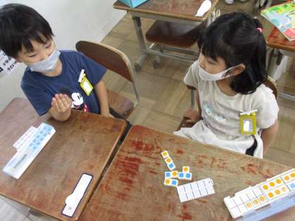 いくつといくつで10になるか考えて,隣の席のお友達とゲームをしました。何度も繰り返して行うことでだんだん慣れてきた様子でした。