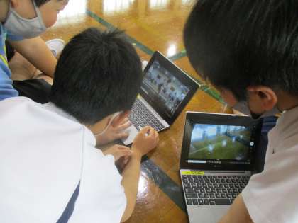 友達と話し合ったり,タブレットで撮影したりと工夫しながら学習しています。