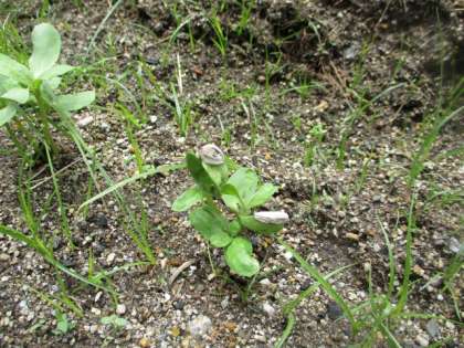 花壇に植えたひまわりの芽がでました。種の殻もついていました。かわいい芽です。