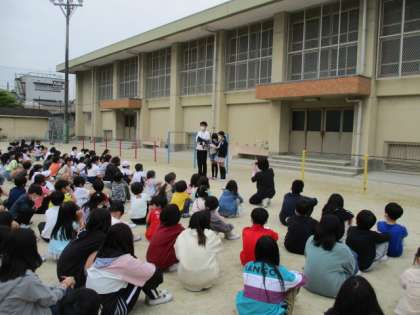 運動場に集まってからは,ジュニア消防団で活動している6年生も自分たちの経験からいのちを守るために大切なことを発表しました。