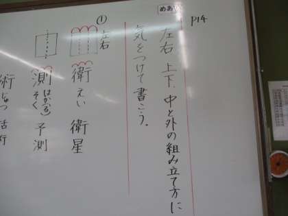今日の書写の時間は,硬筆で 文字の組み立て方に