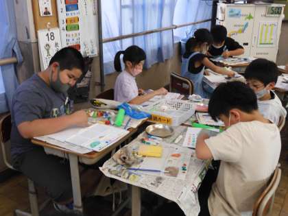 子どもたちは,互いにアドバイスをし合いながら,いろいろな模様を生み出すことができていました。