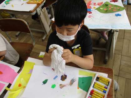 今日は前回の図工の続きで,絵をかき足したり背景をつけたりしました。「クレパスは,暗い色は最後に使うんだな。」「クレパスをきれいにしてからかこう。」など,気を付けて活動をしていました。