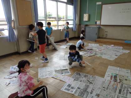 丸めたり,やぶったりして楽しみました。
