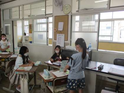 友だちの今頑張っていることや興味のあることなどについて,たくさん質問し,盛り上がっている様子の子どもたちでした。