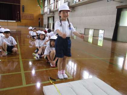 今日は,立ち幅跳びをしました。初めての挑戦でしたが,リズムよくとぶことができていました。