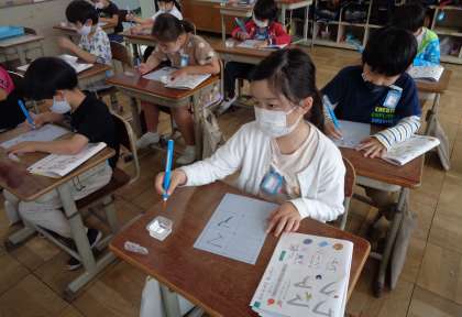 いつもと違う筆記用具で,楽しく書くことができていました。