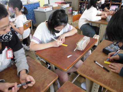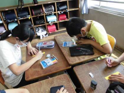 1年生へのプレゼントを作りました。時間をかけて心をこめて作っています。1年生一人一人の名前をひらがなでていねいに書いていました。だれかのために心をこめてプレゼントを作る時間はなんと素敵な時間でしょう。