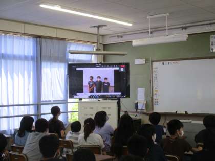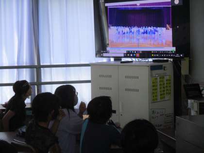 各学年が録画した1年生へのお祝いのメッセージをオンラインで見ました。