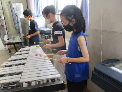 今日の音楽の学習では,鉄琴・木琴に挑戦しました。