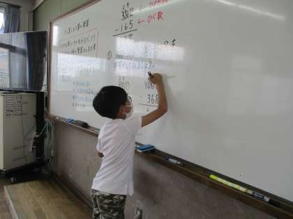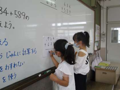みんなの前で説明をしながら筆算をしたり,気を付けるところをみんなで確認したりなど,意欲的に授業に取り組む姿がすてきです。