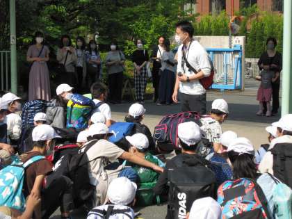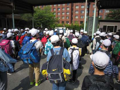 集合時間よりも早く登校してきた子どもたち。