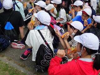 オレンジジュースを飲み,心も体もリフレッシュ!