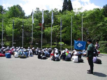 花背山の家には,同じ日に砂川小学校以外にもう1校,宿泊学習に来ていました。2日目の朝,その学校の校長先生が声をかけてくださいました。
