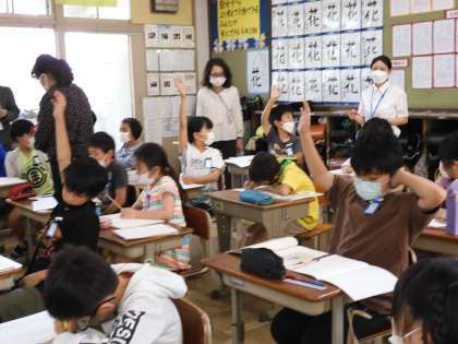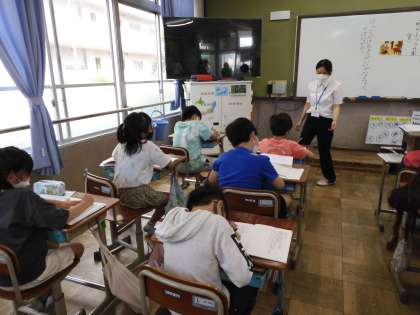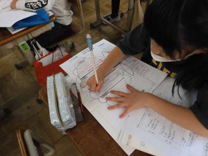 毎時間,学習の終わりには,花のかたちのワークシートにふり返りを書き込んでいます。