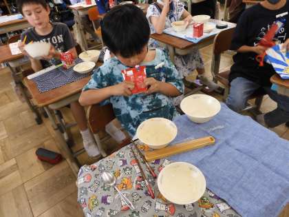 暑い中,給食を作ってくださっている調理員さんたちのことを考えていると,子どもたちは気づきました。