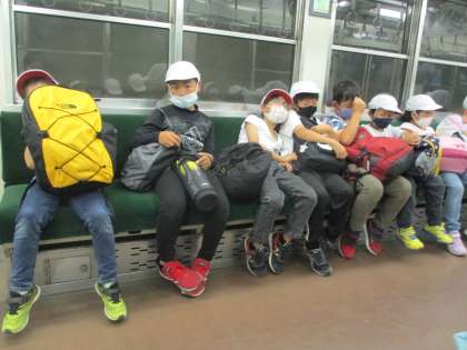 行きの電車ではわくわくした様子の子どもたちも,帰りの電車では達成感と疲れでいっぱいの様子でした。