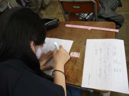 文の初めと終わりで中心をそろえたりと気をつけるポイントを意識して