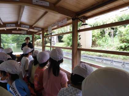 舟の中では,十石舟や伏見港の歴史をお話ししてくださいました。