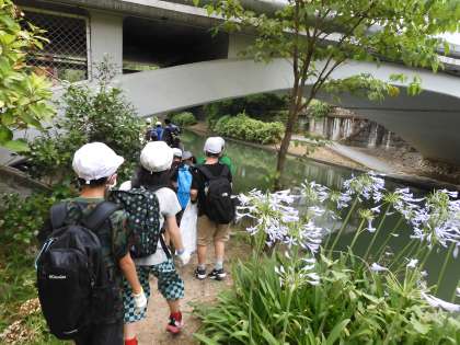日頃からきれいにお掃除されているので、ごみはほとんど落ちていないとのことでした。ごみを探しながら、川辺の生物も観察することができました。