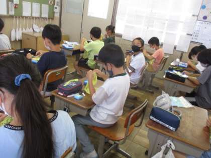 5年生から始まった家庭科で 7月は,裁縫にチャレンジしました。