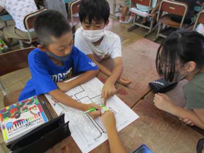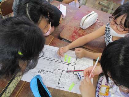 総合では「わくわく大好き砂川たんけんたい」として,安全マップ作りに取り組んでいます。
