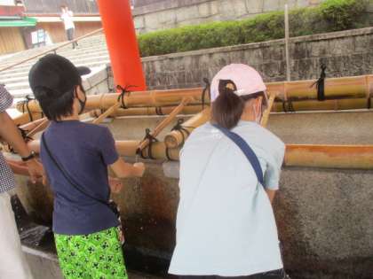 千本鳥居では、高学年の子どもたちは、「北海道や青森、大分、岩手っていろんなところから来てるな!」と驚いていました。また、外国の方や修学旅行生など、観光客もたくさん来ていたので「伏見稲荷大社って有名なんだな。」と言っている子どももいました。