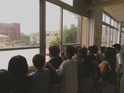 6時間目の終わりごろ、運動場から声が聞こえてきました。