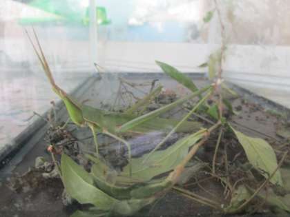今日虫かごの中をのぞくと、こんなにも大きなバッタがいました!